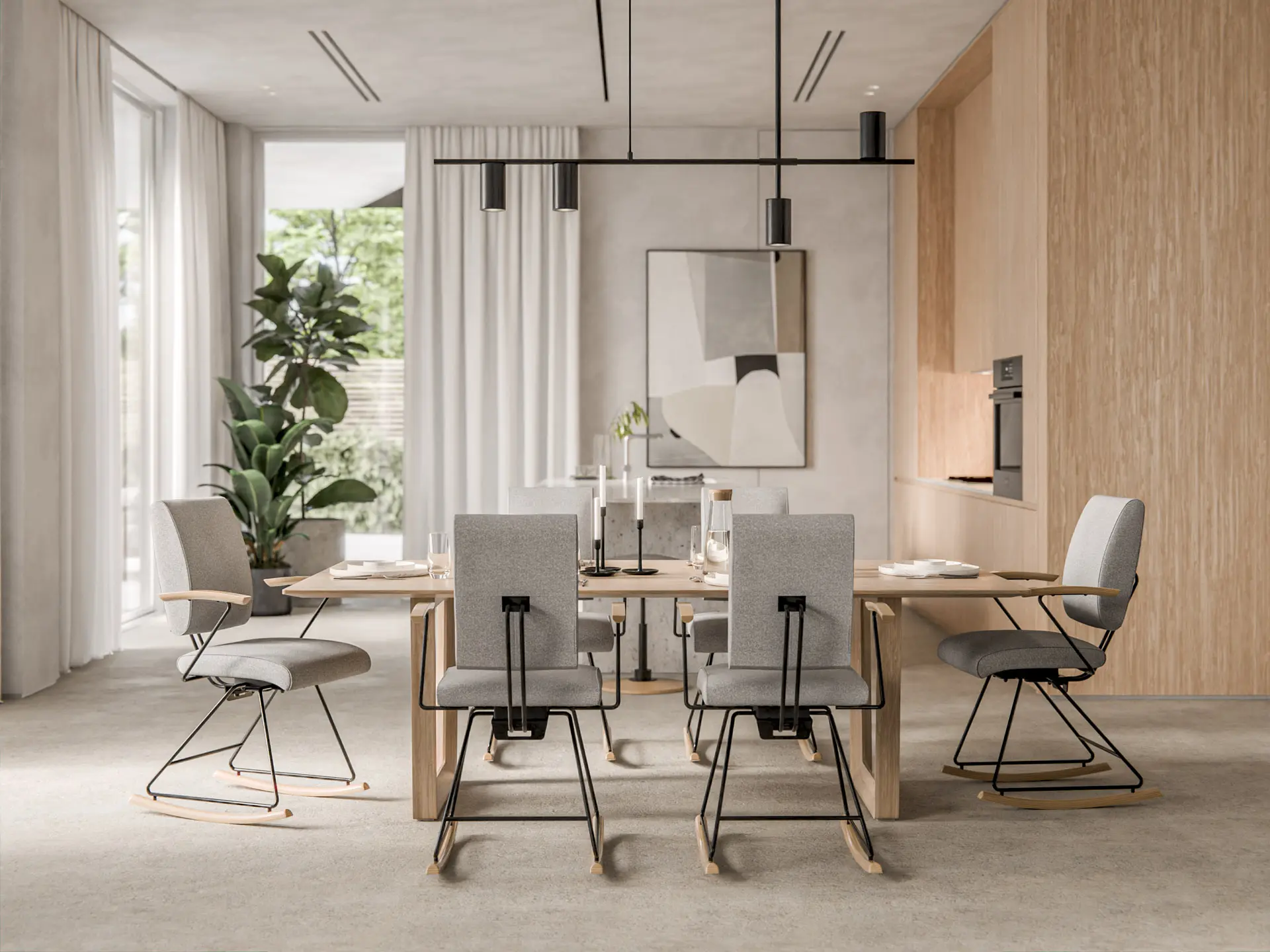 Porusza się nie tylko siedzisko i oparcie – cały fotel reaguje elastycznie, płynnie i automatycznie. Ruchoma konstrukcja zapewnia stabilne podparcie ciała przy każdym ruchu, wspierając aktywne i dynamiczne siedzenie.
