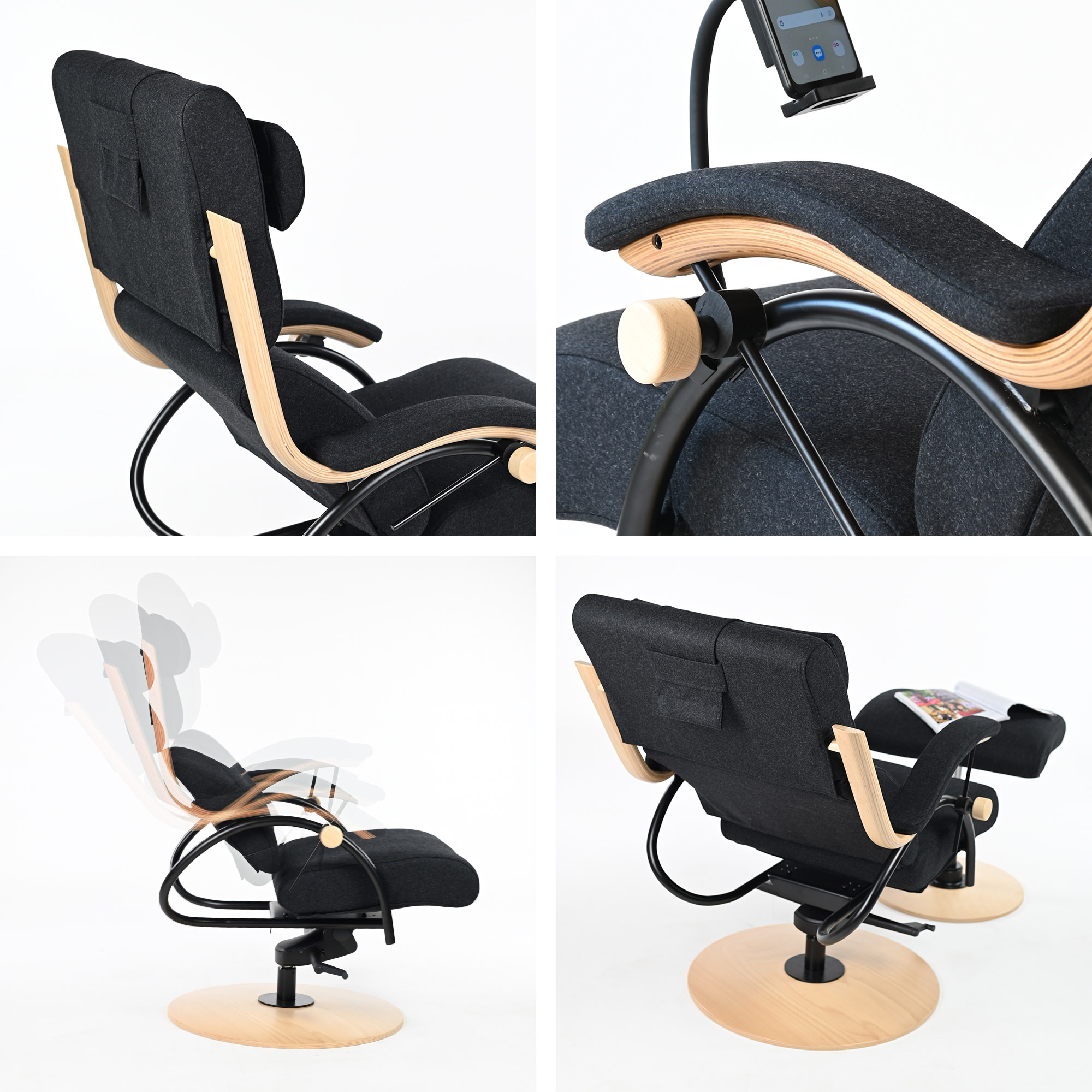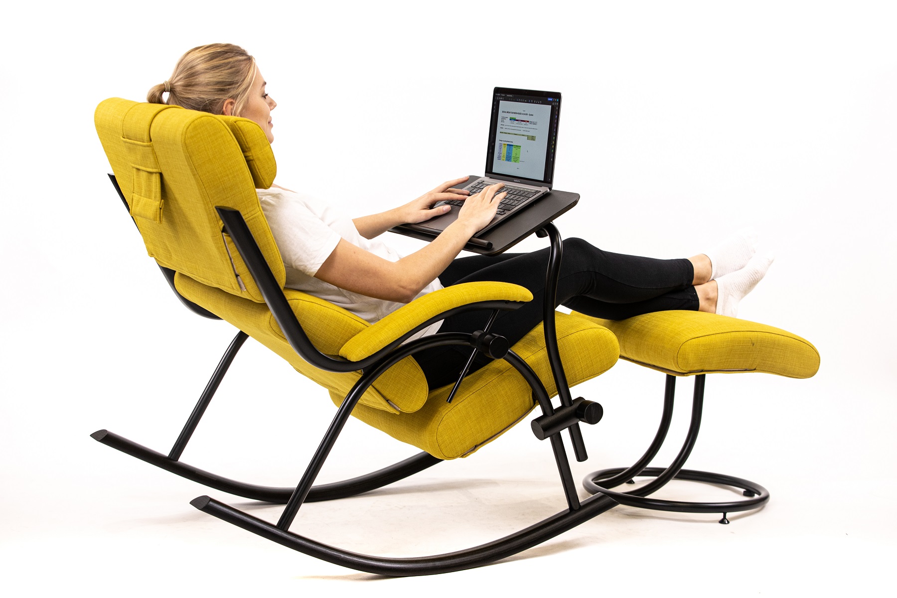 Tu znajduje swoje zastosowanie taboret, z funkcją synchronicznego bujania się dopasowanego do ruchomości Fotela, oraz z ruchomą wokół osi poprzecznej poduszką.
